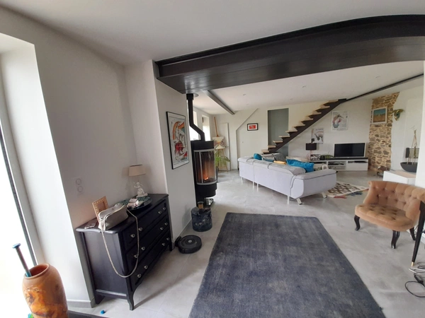 Votre conseillère Noovimo Claire POUZET 06 71 93 53 79 vous propose : De découvrir cette maison restaurée dans la campagne proche de l'axe Ancenis - St Mars la Jaille, à 5min du péage de l'A11 (Nantes-Angers), 5min du bourg de Mésanger, 10min d'Ancenis. Rénovée en 2019, celle-ci se compose d'une pièce de vie de plus de 63m2 avec une cuisine ouverte aménagée et équipée ET poêle à pellet. Elle vous propose 2 CHAMBRES LUMINEUSES et 1 SUITE PARENTALE, salle d'eau avec baignoire, entrée avec dressing, buanderie...